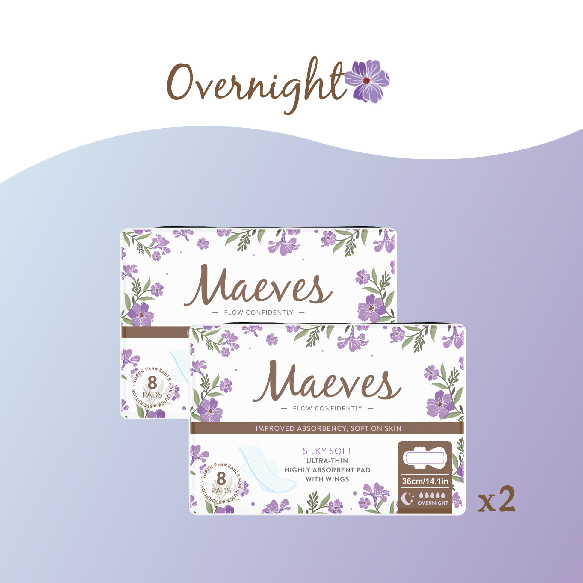 From the freedom of our Regular pads to the ultra-protection of our Overnight pads, Maeves cares about your health. Make sure to change your pad frequently for good hygiene and to protect your intimate areas.